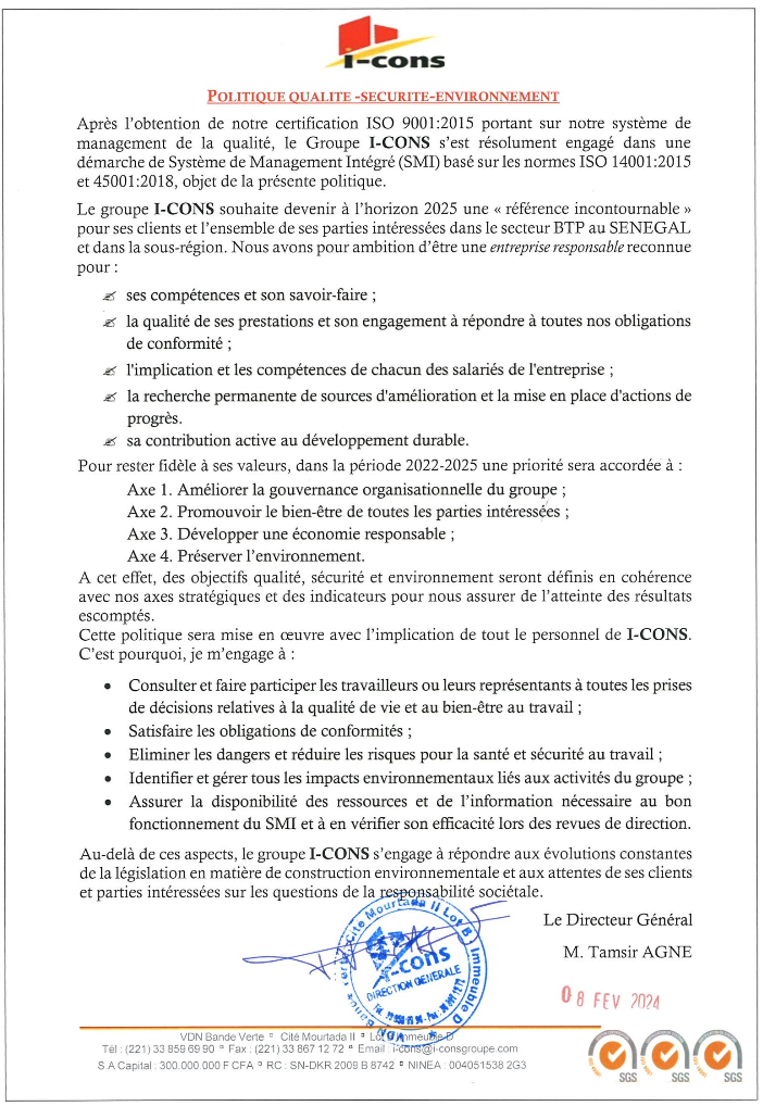 RSE- Dialogue I-CONS & UNICEF en vue d’un partenariat pour le développement durable Politique QSE Lire plus